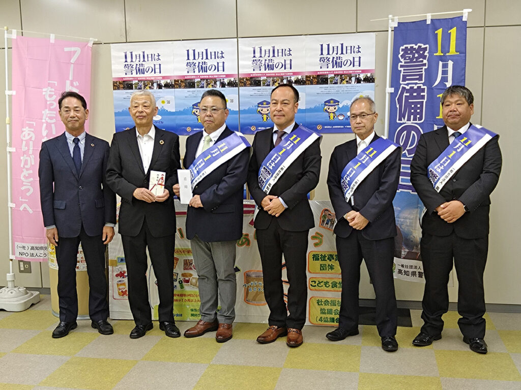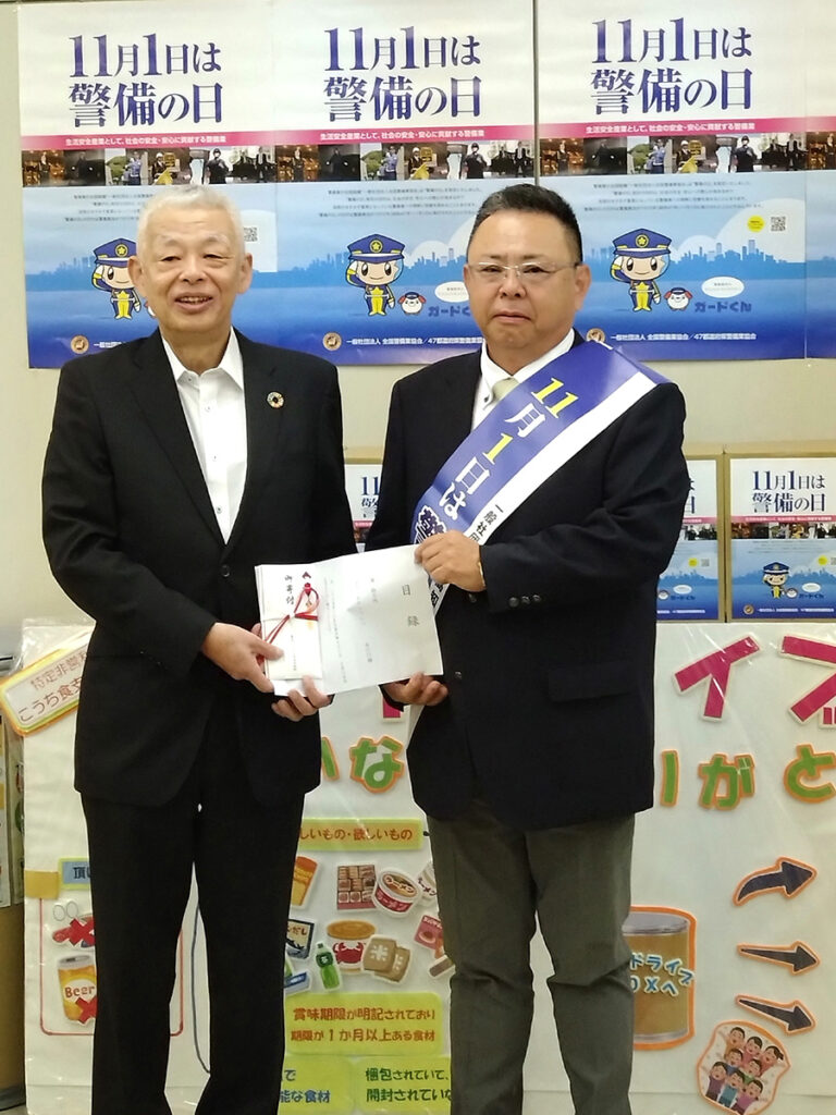 「警備の日」広報啓発活動として、「NPO法人こうち食支援ネット」に寄付しました。